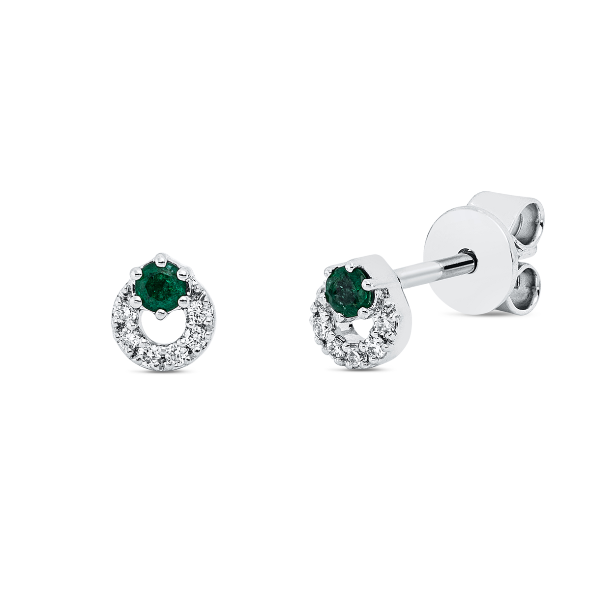 Ohrstecker 18 kt GG, 12 Brillanten 0,04 ct, TW-si, 2 Smaragde 0,08 ct grün