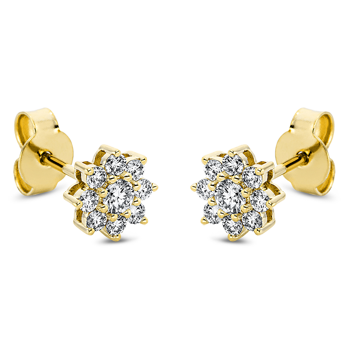 Ohrstecker 18 kt GG, 2 Brillanten 0,20 ct, TW-si, 16 Brillanten 0,40 ct, TW-si