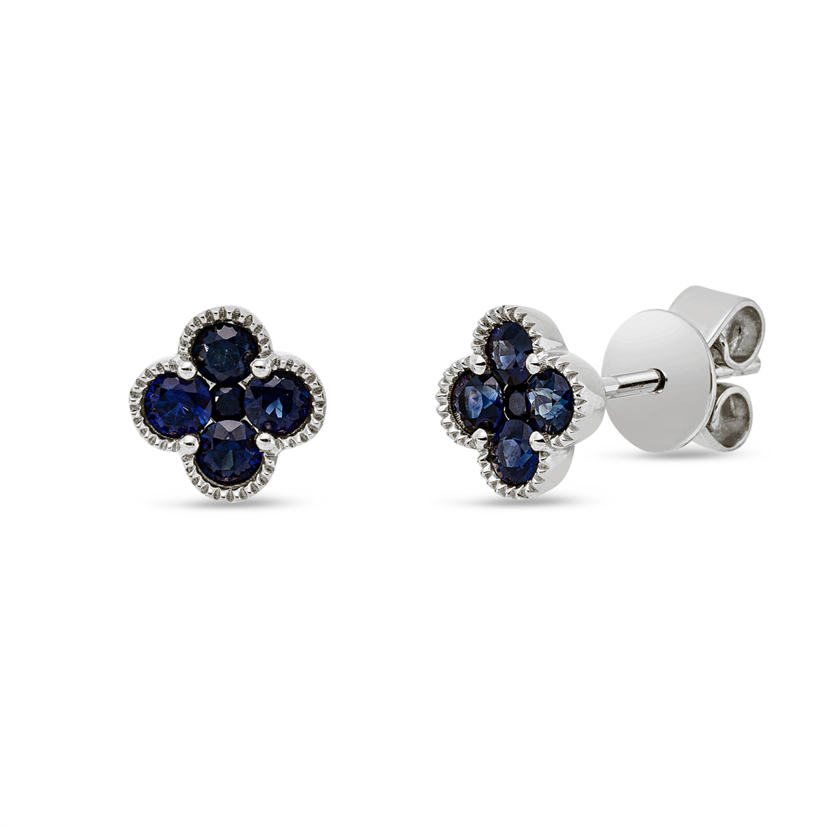 Ohrstecker 18 kt GG, 8 Saphire 0,44 ct blau, 2 Saphire 0,03 ct blau
