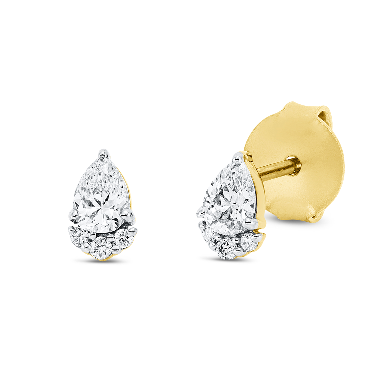 Ohrstecker 18 kt GG, Fassung rhodiniert, 2 Tropfen 0,29 ct, TW-si, 6 Brillanten 0,04 ct, TW-si, H:5,8 mm, B:3,6 mm, S:1,8 mm
