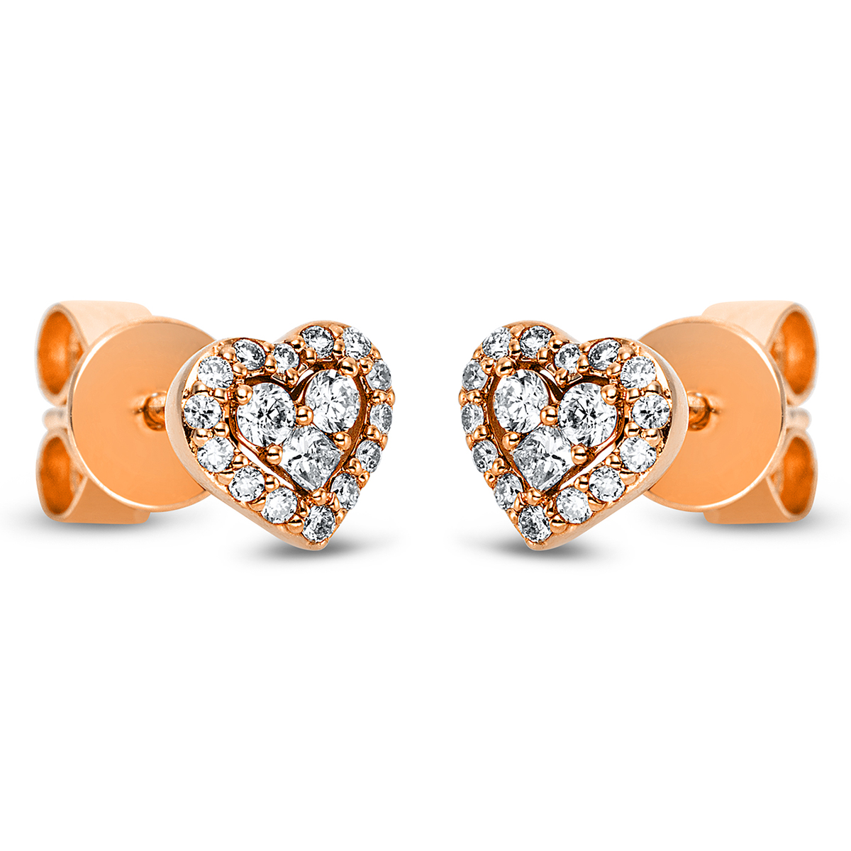 Ohrstecker 18 kt GG Herz, 4 Brillanten 0,06 ct, TW-si, 2 Princ. 0,04 ct, TW-si, 28 Brillanten 0,09 ct, TW-si