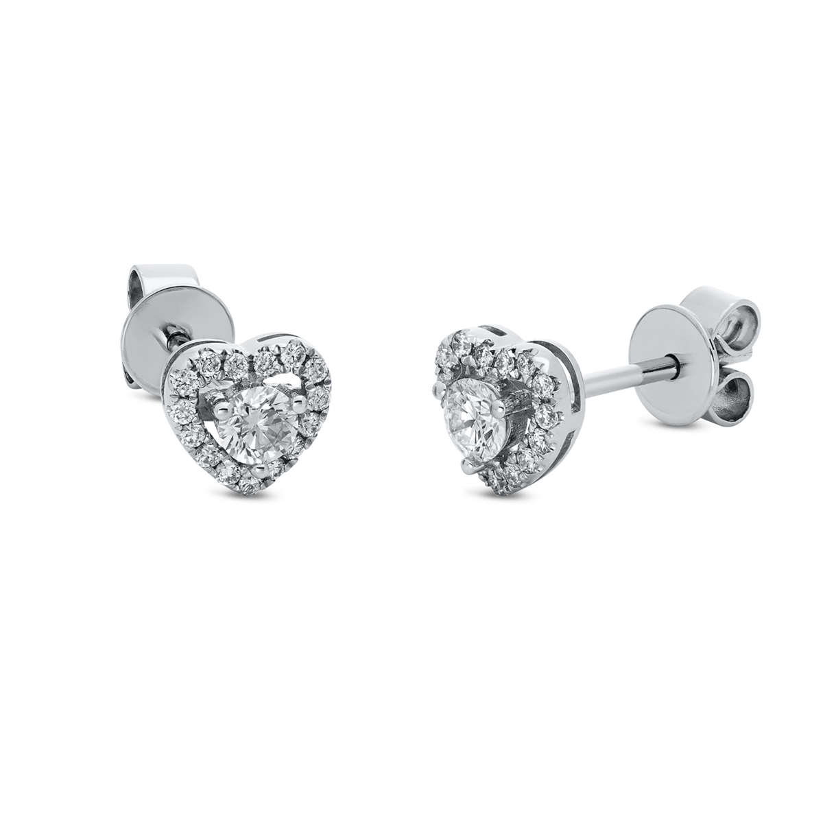 Ohrstecker 18 kt GG Herz, 30 Brillanten 0,12 ct, TW-si, 2 Brillanten 0,19 ct, TW-si, H:5,9 mm, B:6,2 mm