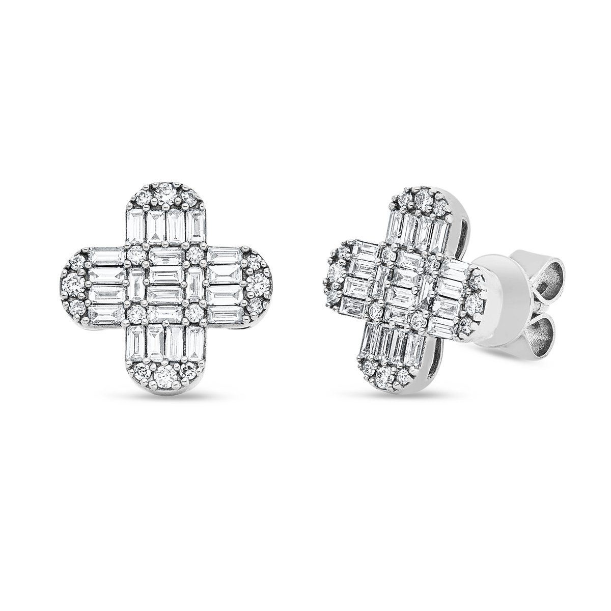 Ohrstecker 18 kt RG, 44 Baguette 0,56 ct, TW-vsi, 32 Brillanten 0,19 ct, TW-si, H:11,9 mm, B:11,8 mm, S:3,6 mm