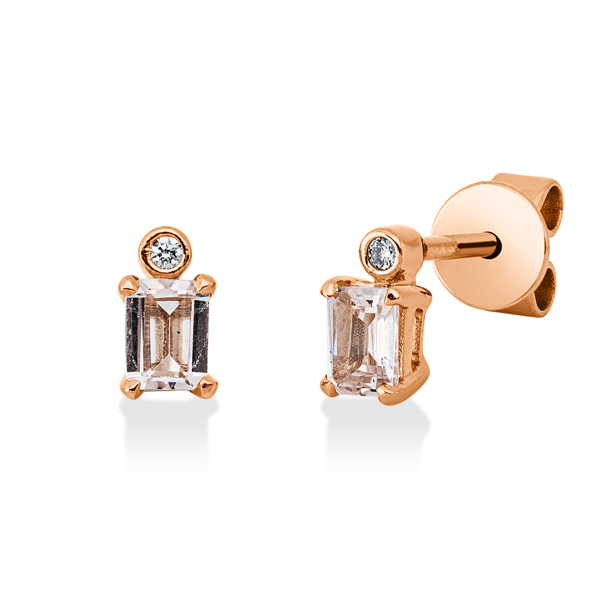 Ohrstecker 18 kt RG, 2 Brillanten 0,02 ct, TW-si, 2 Morganit 0,52 ct, H:6,3 mm, B:3,8 mm, S:3,7 mm