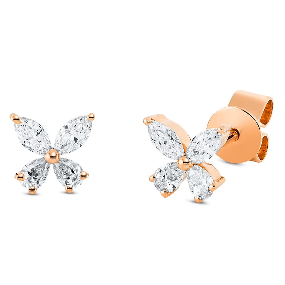 Ohrstecker 18 kt RG, 4 Tropfen 0,14 ct, TW-vsi, 4 Navette 0,18 ct, TW-vsi