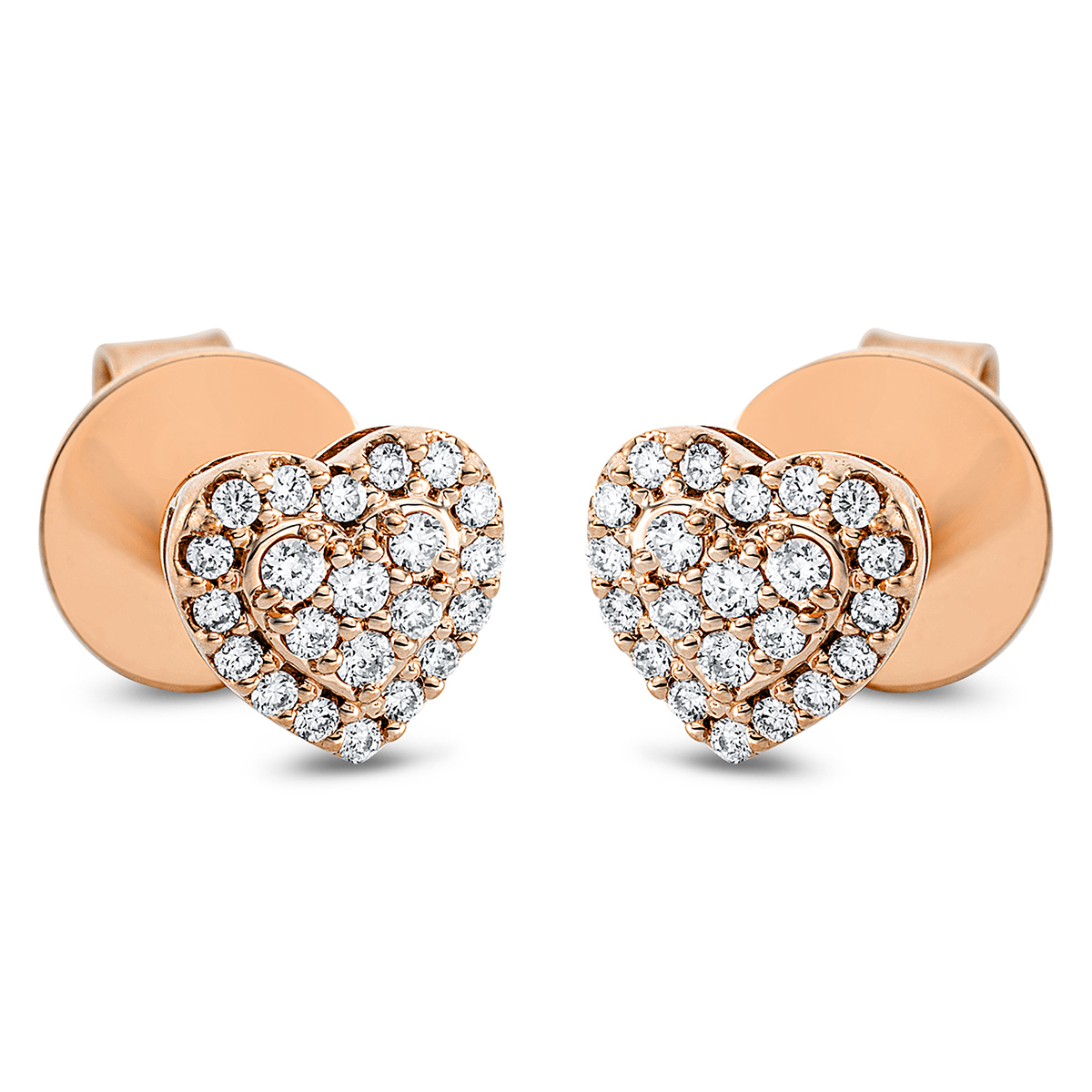 Ohrstecker 18 kt RG Herz, 44 Brillanten 0,20 ct, TW-si, H:6,3 mm, B:6,7 mm, S:3,0 mm