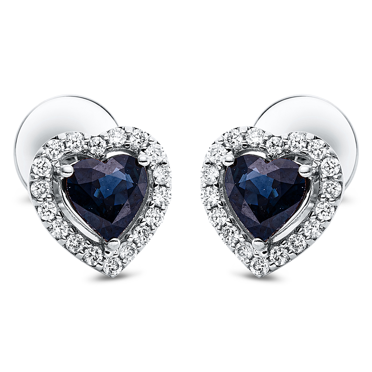Ohrstecker 18 kt RG Herz, 36 Brillanten 0,24 ct, TW-si, 2 Saphire 1,00 ct blau, H:8,7 mm, B:8,4 mm, S:3,9 mm