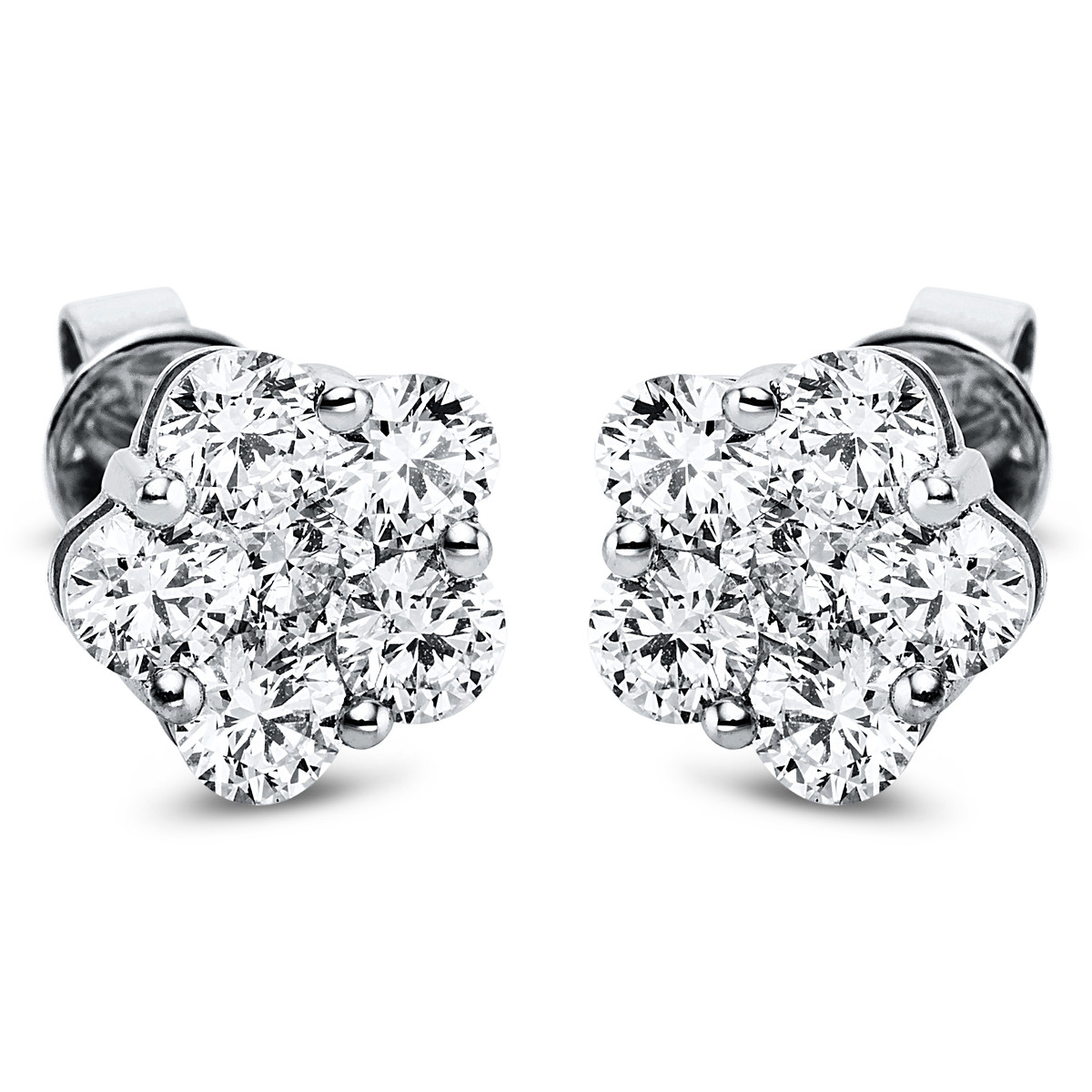 Ohrstecker 18 kt WG, 12 Brillanten 2,09 ct, TW-si, H:9,2 mm, B:9,4 mm, S:3,7 mm