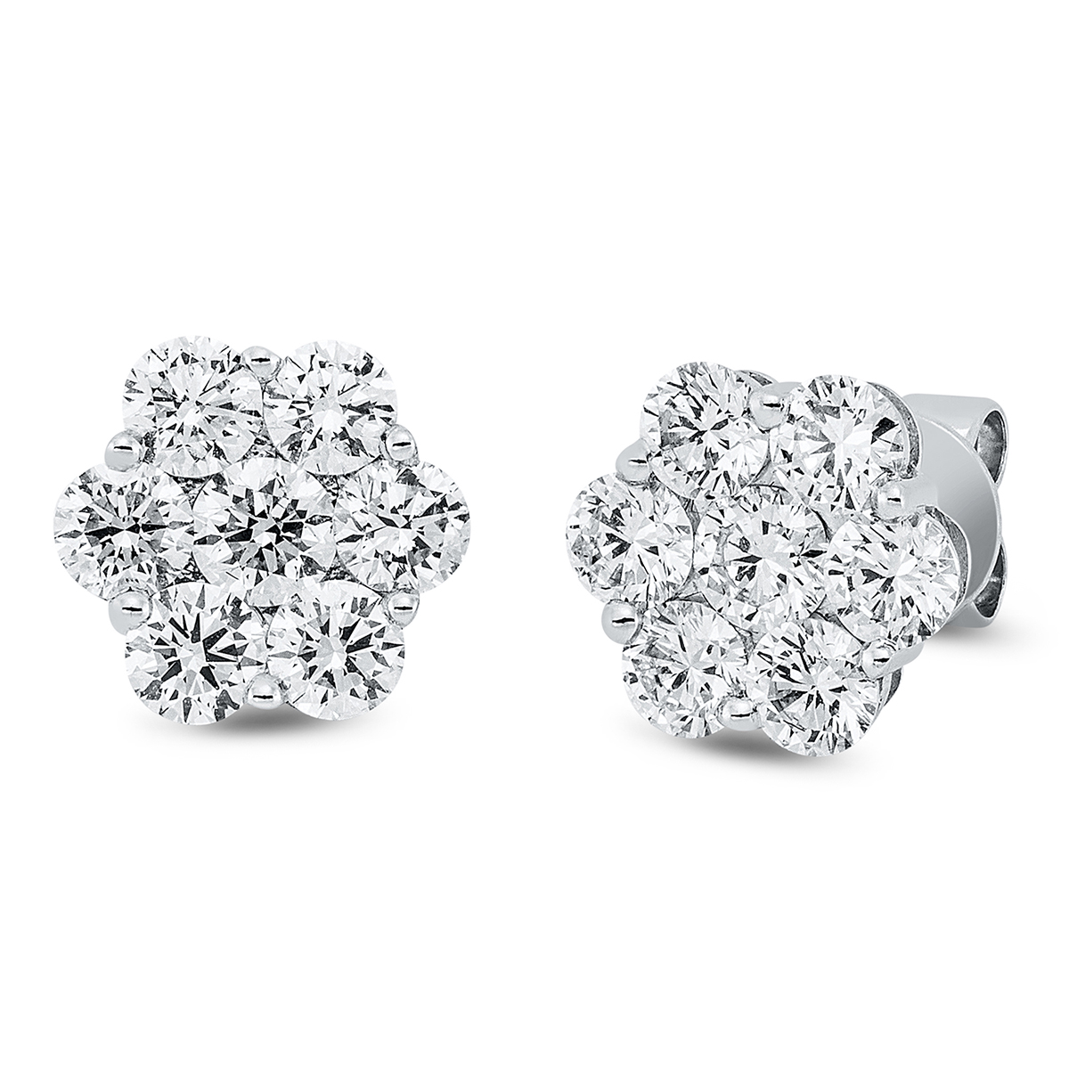 Ohrstecker 18 kt WG, 2 Brillanten 0,37 ct, TW-si, 12 Brillanten 1,82 ct, TW-si, H:9,7 mm, B:9,2 mm, S:2,9 mm