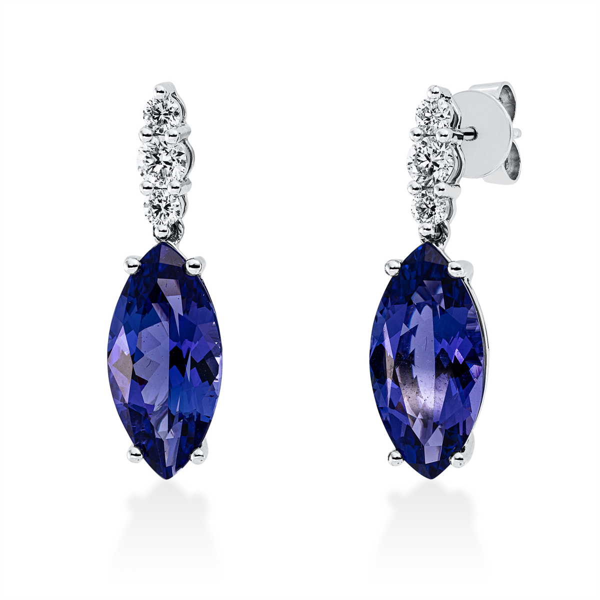 Ohrstecker 18 kt WG, 4 Brillanten 0,23 ct, TW-si, 2 Brillanten 0,31 ct, TW-si, 2 Tansanit 8,31 ct blau