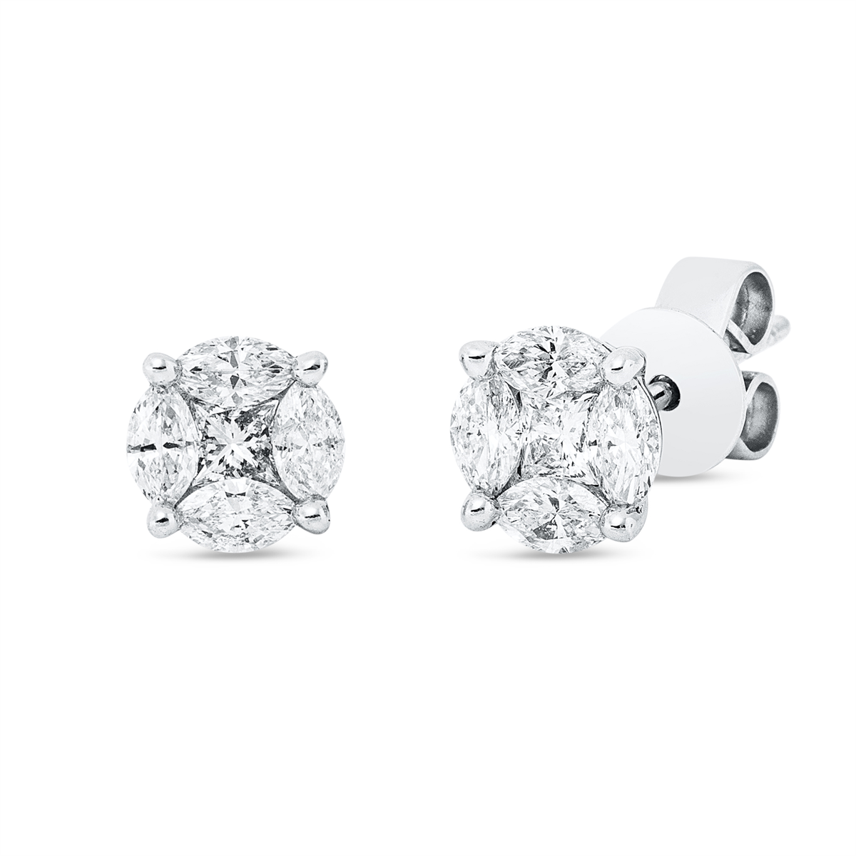 Ohrstecker 18 kt WG, 2 Princ. 0,18 ct, TW-si, 8 Navette 0,57 ct, TW-si