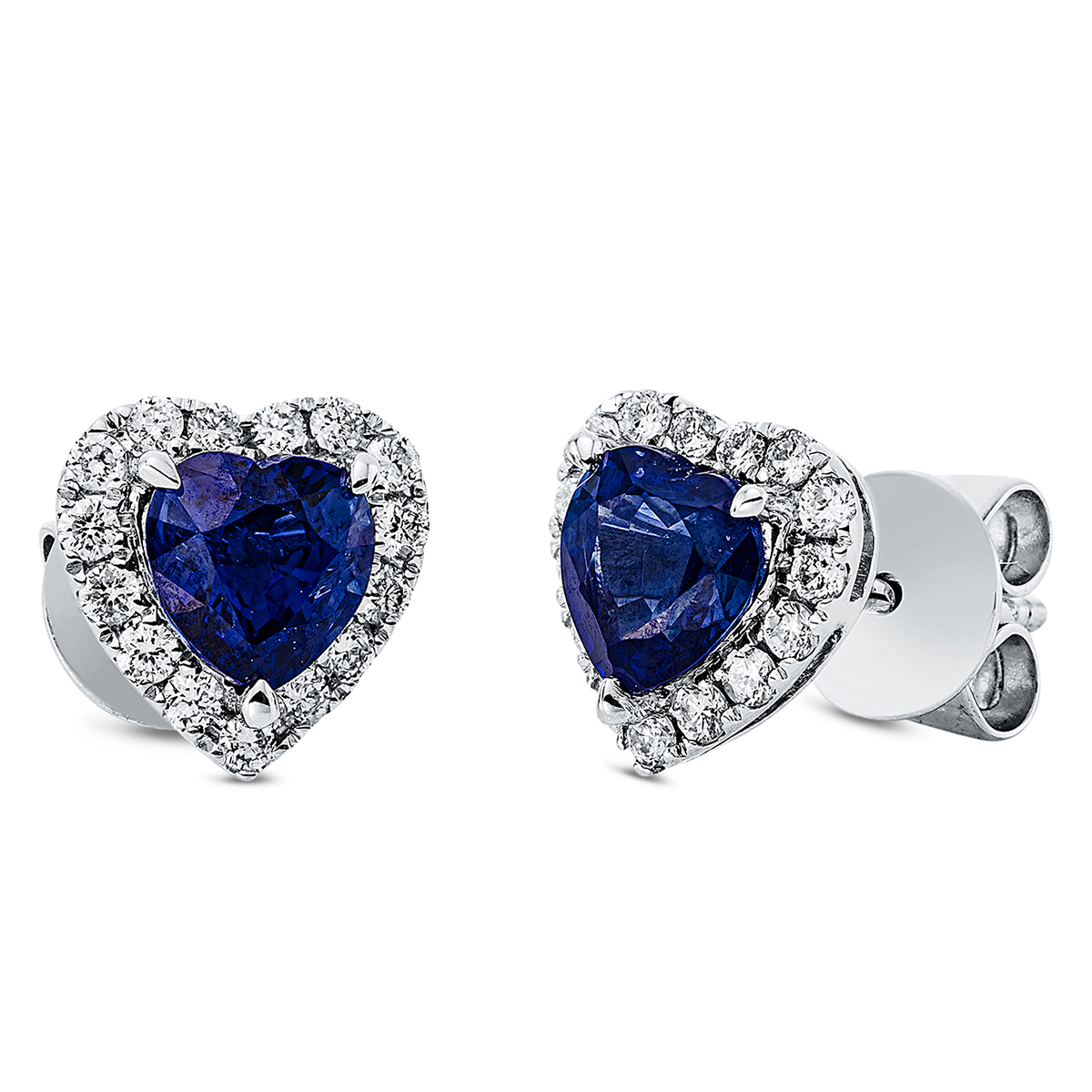 Ohrstecker 18 kt WG, 30 Brillanten 0,23 ct, TW-si, 2 Saphire 1,31 ct blau