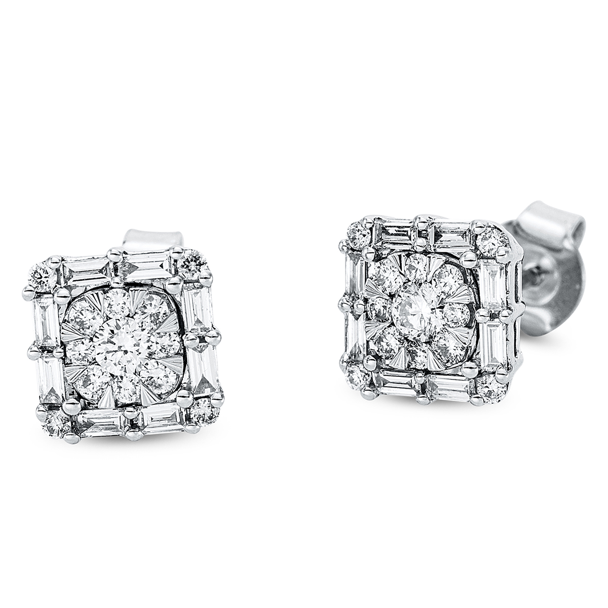 Ohrstecker 18 kt WG, 16 Sm.schliff 0,25 ct, TW-si, 26 Brillanten 0,35 ct, TW-si, H:7,8 mm, B:7,1 mm