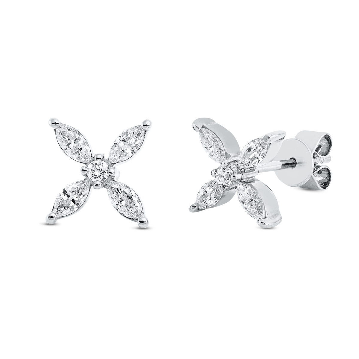 Ohrstecker 18 kt WG, 8 Navette 0,41 ct, TW-vsi, 2 Brillanten 0,04 ct, TW-si