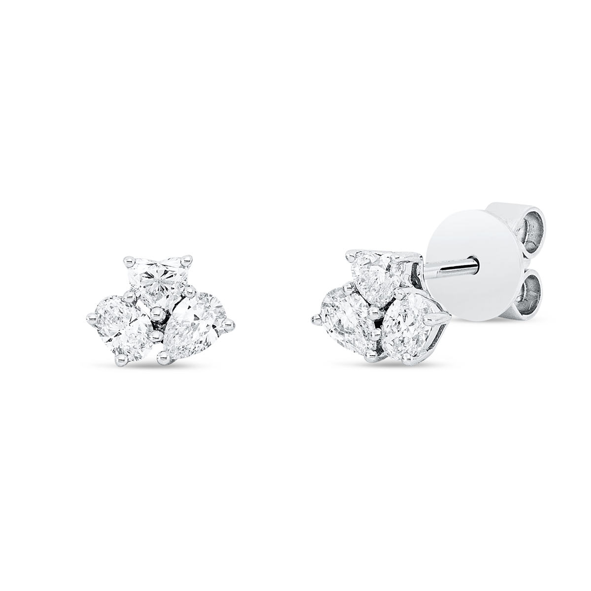 Ohrstecker 18 kt WG, 2 Oval 0,19 ct, TW-si, 2 Herzschl. 0,18 ct, TW-si, 2 Tropfen 0,20 ct, TW-si, H:5,3 mm, B:7,0 mm, S:2,6 mm