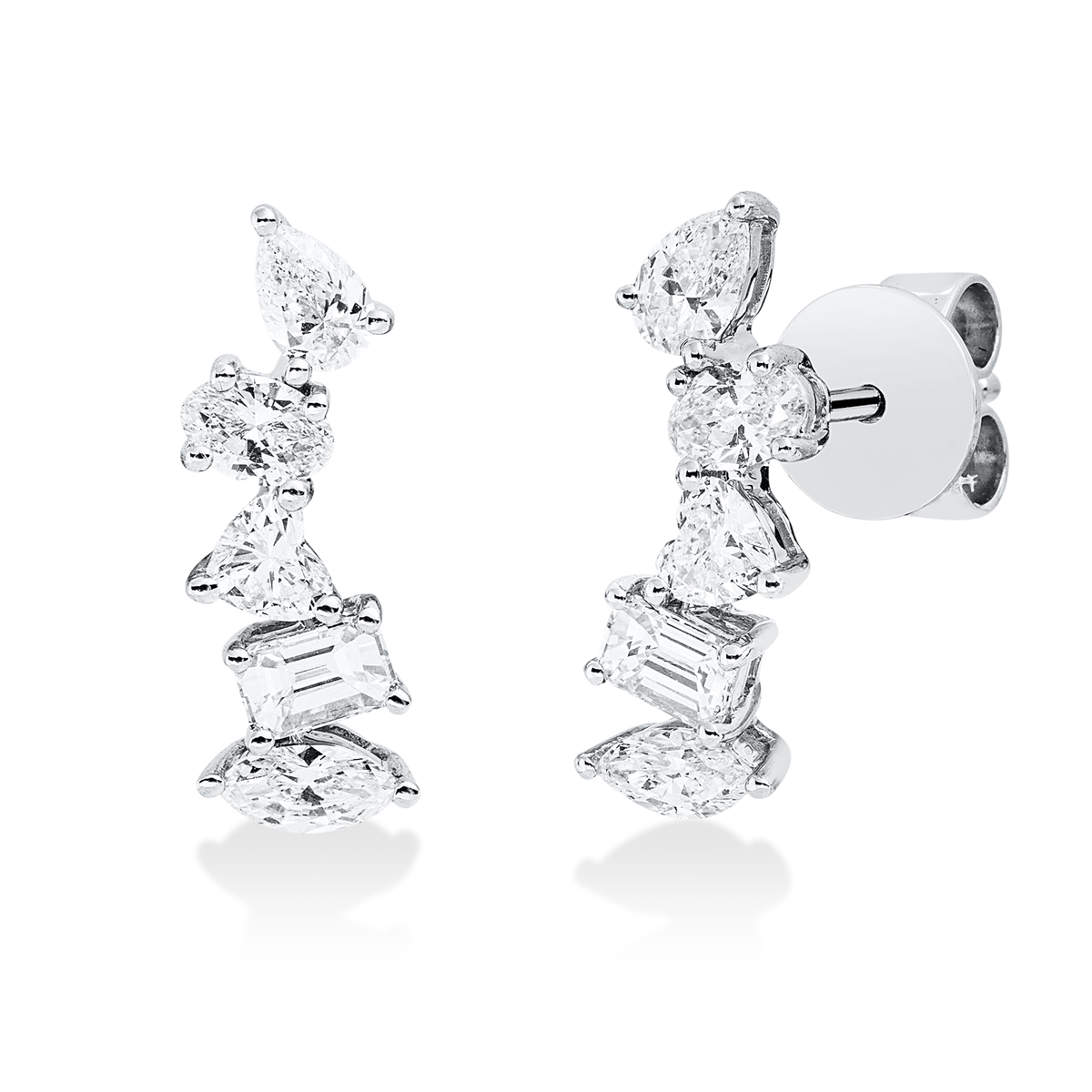 Ohrstecker 18 kt WG, 2 Oval 0,16 ct, TW-si, 2 Navette 0,16 ct, TW-si, 2 Herzschl. 0,17 ct, TW-si, 2 Sm.schliff 0,23 ct, TW-si, 2 Tropfen 0,19 ct, TW-si, H:14,7 mm, B:5,1 mm, S:2,9 mm