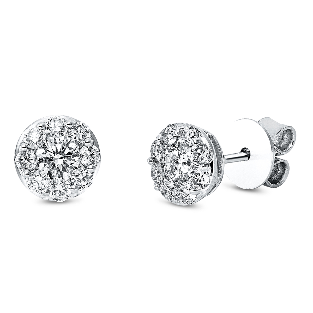 Ohrstecker 18 kt WG, 2 Brillanten 0,30 ct, TW-si, 16 Brillanten 0,36 ct, TW-si