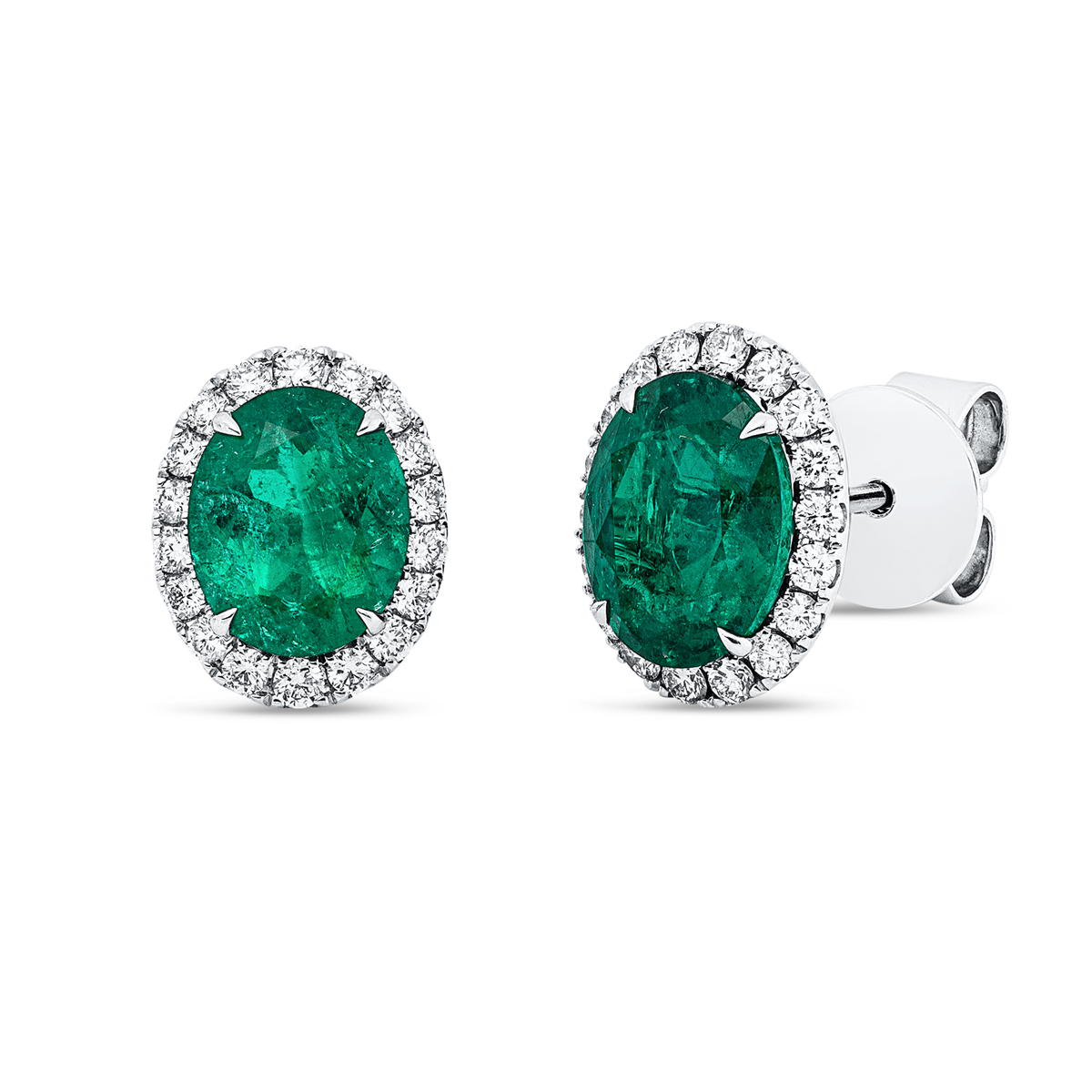 Ohrstecker 18 kt WG Oval, 36 Brillanten 0,36 ct, F-vsi/si, 2 Smaragde 2,65 ct grün