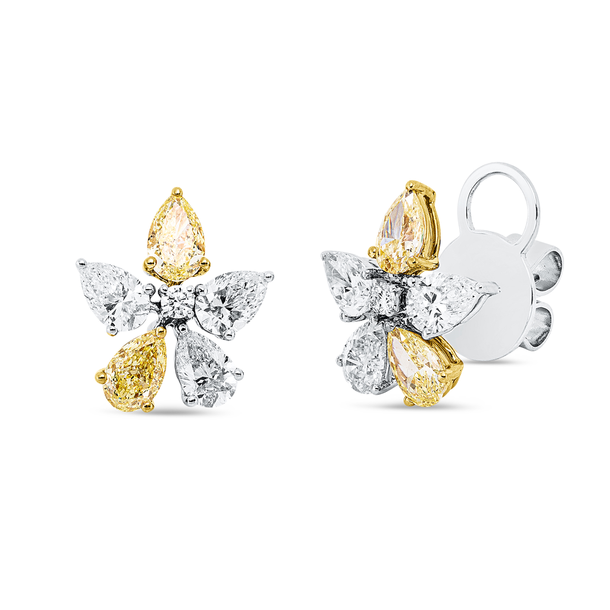Ohrstecker 18 kt WG+GG, 6 Tropfen 1,40 ct, TW-vsi, 2 Brillanten 0,06 ct, TW-vsi, 4 Tropfen 1,17 ct, gelb