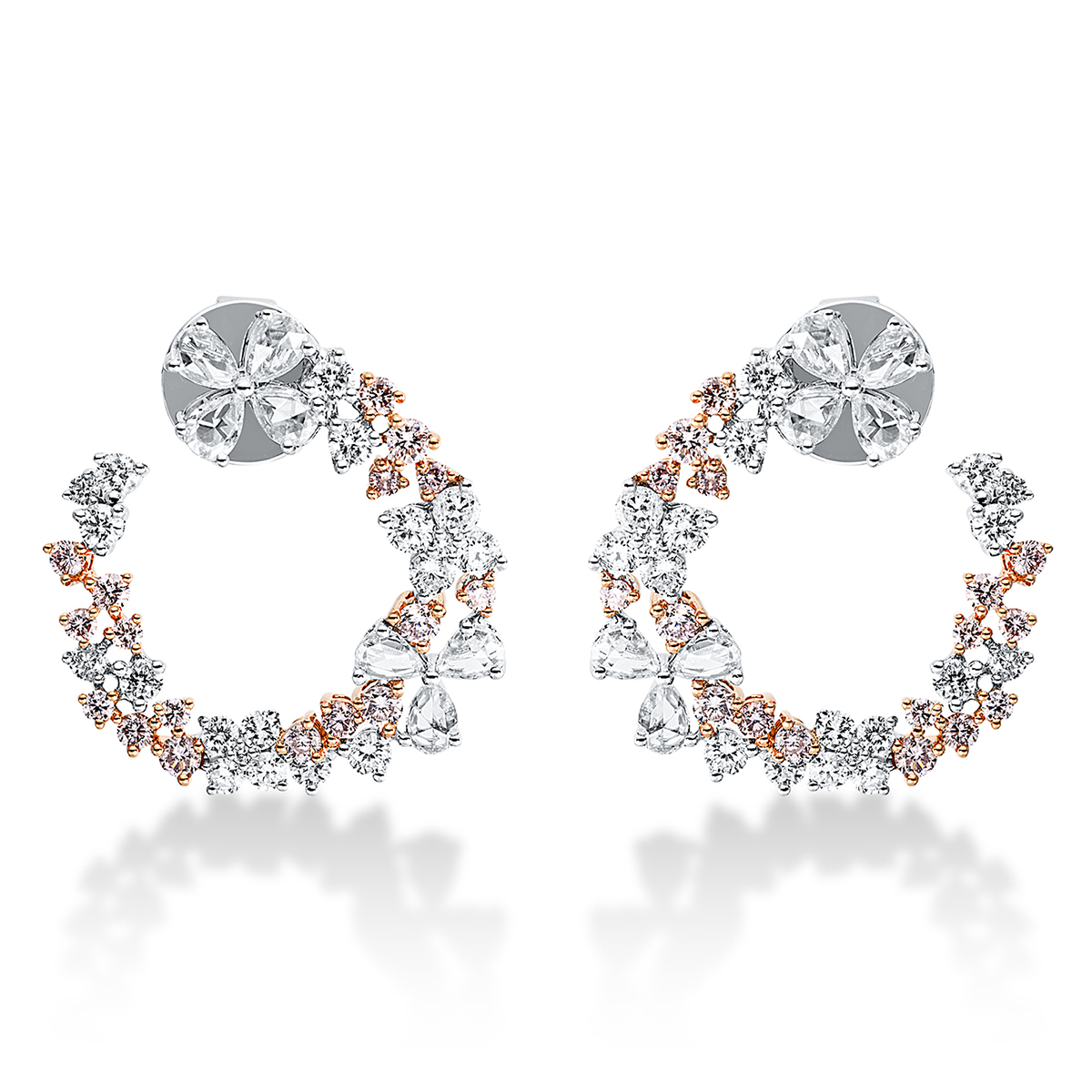 Ohrstecker 18 kt WG+RG, 14 Rosen-Schl 0,83 ct, TW-si, 38 Brillanten 1,18 ct, TW-si, 34 Brillanten 0,79 ct, pink