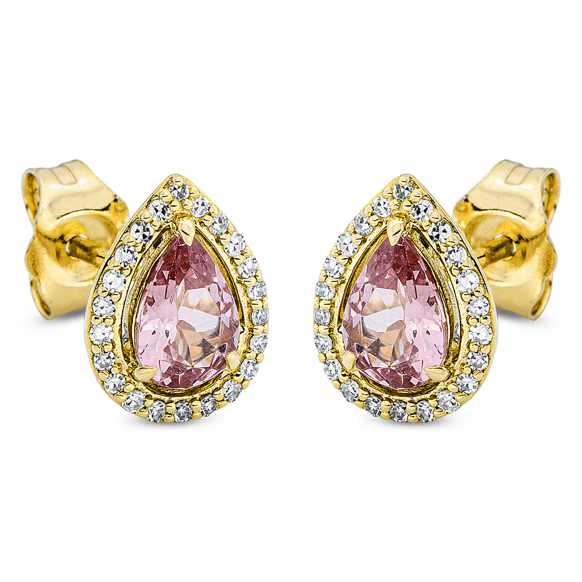 Ohrstecker 3er-Krappe 18 kt GG, 44 Diamanten 0,13 ct, TW-si, 2 Granat 1,04 ct pink, H:9,3 mm, B:7,0 mm, S:3,7 mm