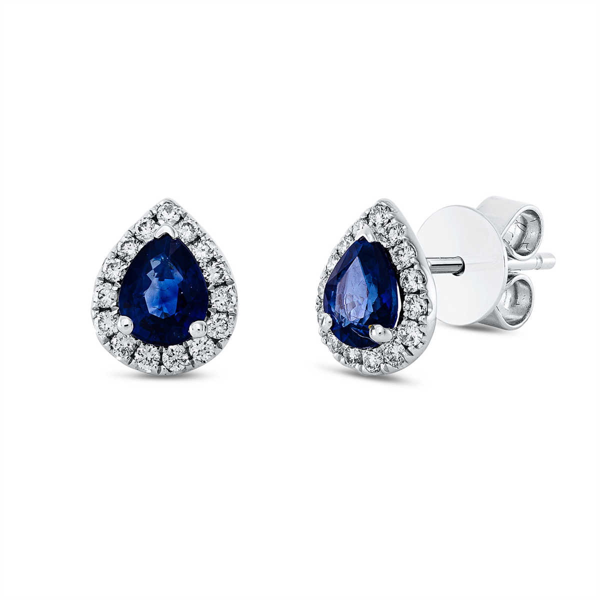Ohrstecker 3er-Krappe 18 kt WG, 30 Brillanten 0,19 ct, TW-vsi/si, 2 Saphire 0,82 ct blau