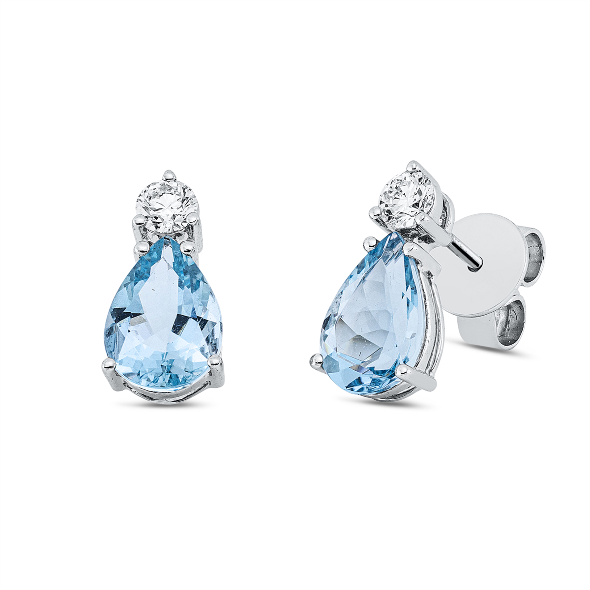 Ohrstecker 3er-Krappe 18 kt WG Tropfen, 2 Brillanten 0,27 ct, TW-vsi, 2 Aquamarin 2,24 ct blau