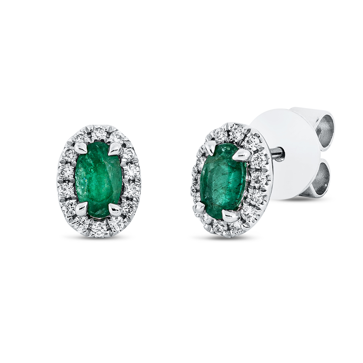 Ohrstecker 4er-Krappe 18 kt GG, 28 Brillanten 0,13 ct, TW-si, 2 Smaragde 0,44 ct grün