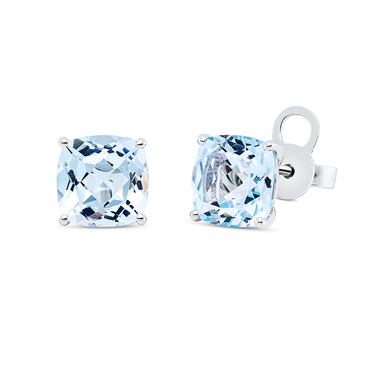 Ohrstecker 4er-Krappe 18 kt GG, Sicherheitsverschluss, 2 Topase 4,10 ct sky blue