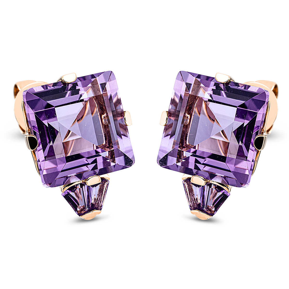 Ohrstecker 4er-Krappe 18 kt RG, 2 Amethyste 12,60 ct lila, 4 Amethyste 0,50 ct lila