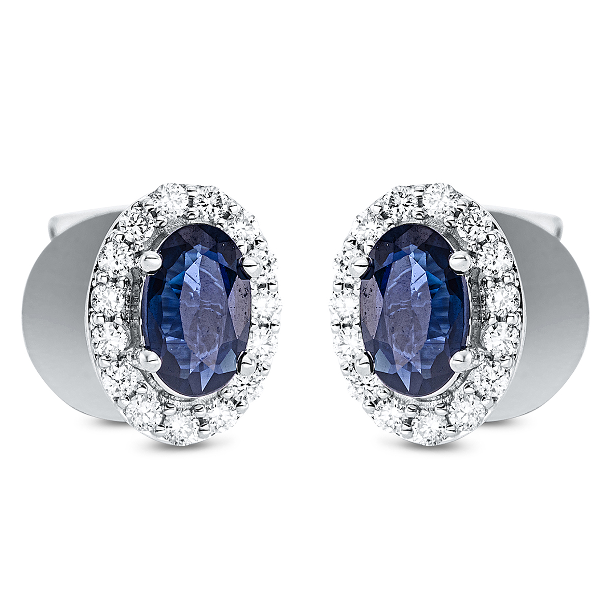 Ohrstecker 4er-Krappe 18 kt WG, 30 Brillanten 0,15 ct, TW-si, 2 Saphire 0,68 ct blau