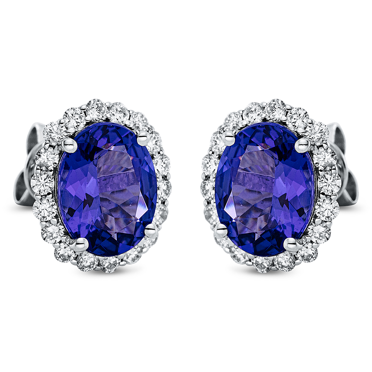 Ohrstecker 4er-Krappe 18 kt WG, 36 Brillanten 0,64 ct, TW-si, 2 Tansanit 4,73 ct blau