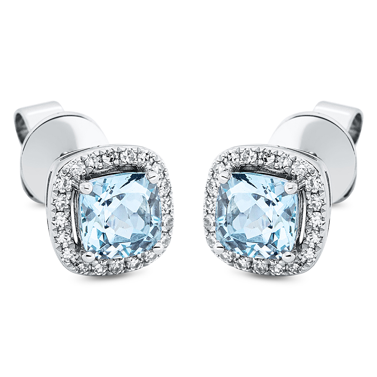 Ohrstecker 4er-Krappe 18 kt WG, 40 Diamanten 0,16 ct, TW-si, 2 Aquamarin 1,12 ct blau