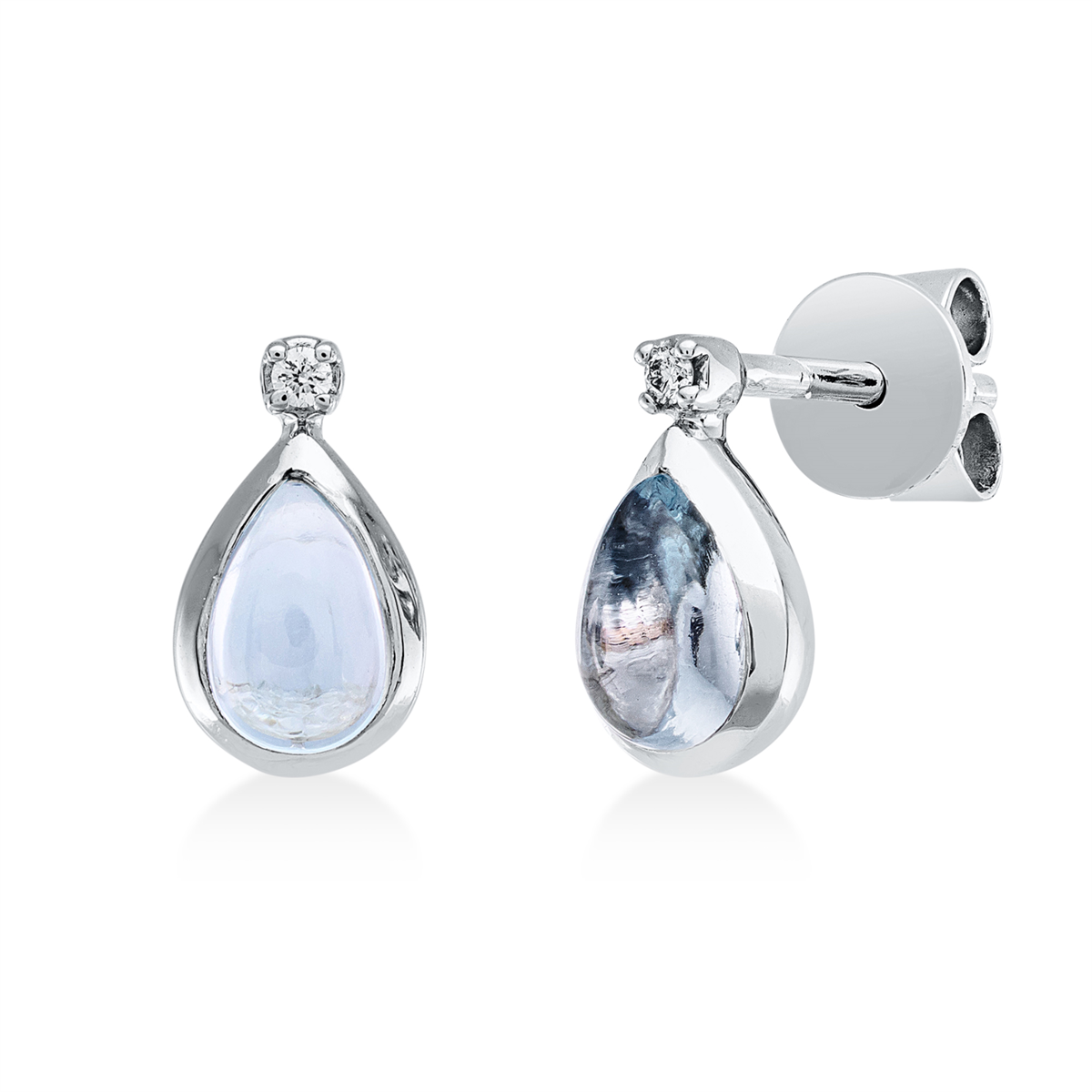Ohrstecker Zarge 18 kt WG Tropfen, 2 Brillanten 0,02 ct, TW-si, 2 Topase 0,90 ct sky blue