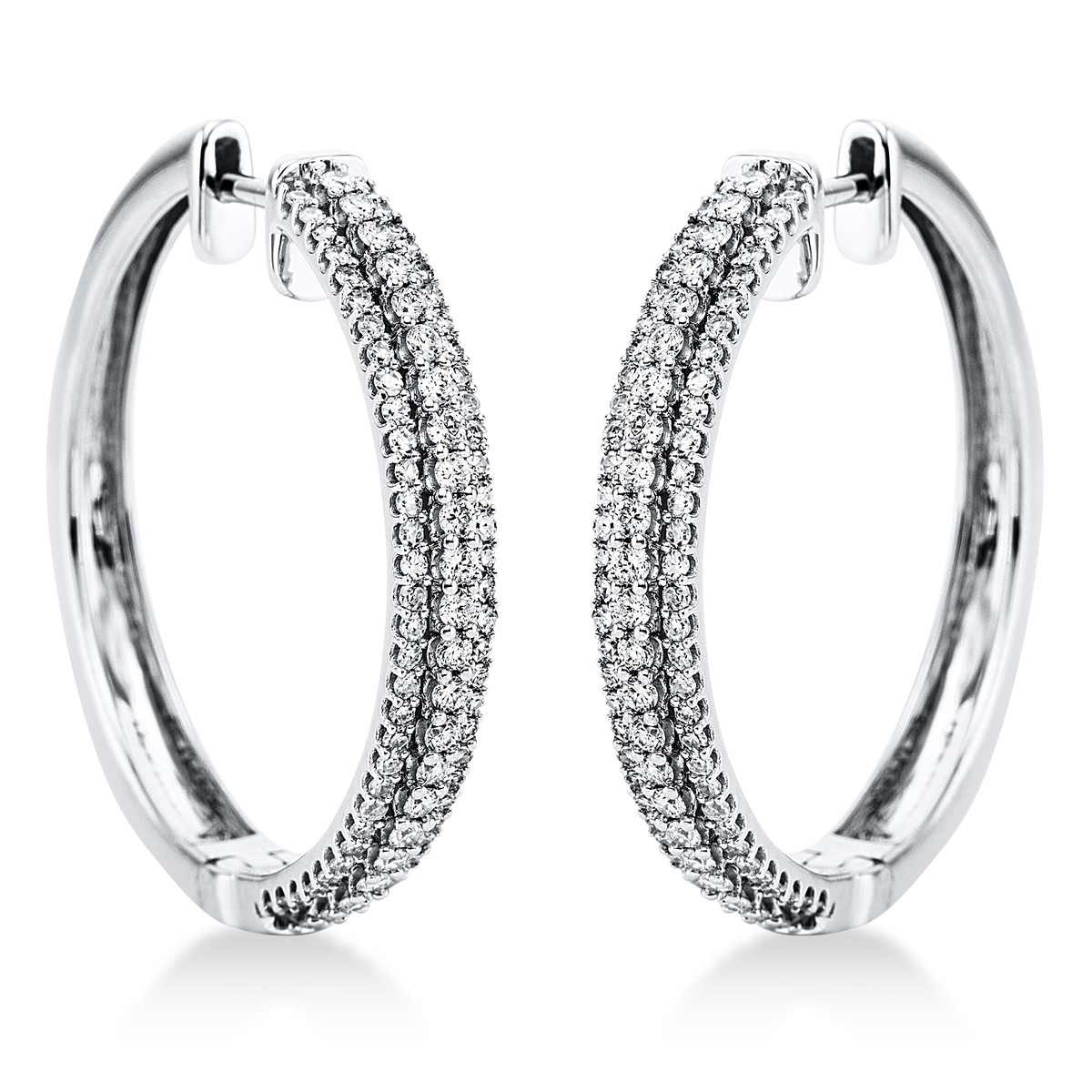Pavé Creolen 18kt Rotgold Fassung rhodiniert mit 0,97ct Diamanten