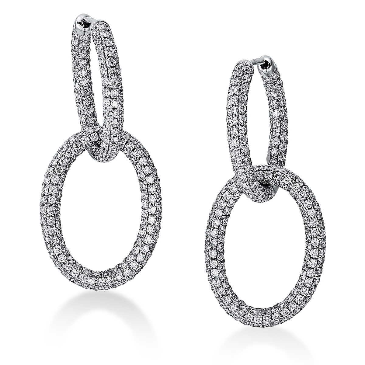 Ohrschmuck 18 kt WG, 688 Brillanten 5,71 ct, TW-vsi, H:43,9 mm, B:19,7 mm, S:3,0 mm