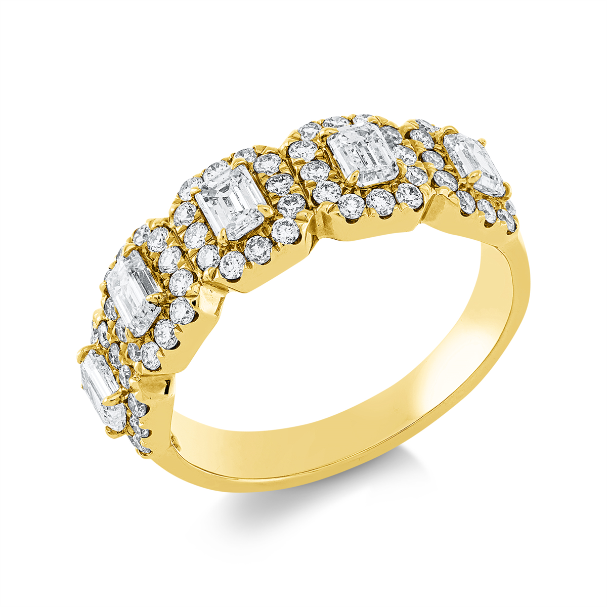 Ring 14 kt GG, 5 Sm.schliff 0,98 ct, TW-si, 60 Brillanten 0,65 ct, TW-si, Weite:56,5