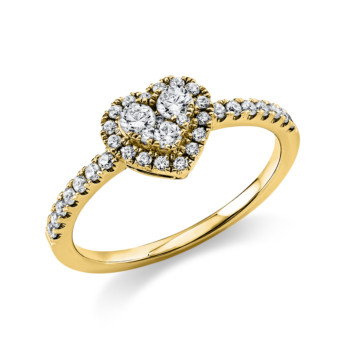 Ring 14 kt GG Herz, 14 Brillanten 0,14 ct, TW-si, 1 Brill. 0,03 ct, TW-si, 2 Brillanten 0,11 ct, TW-si, 19 Brillanten 0,13 ct, TW-si, H:8,2 mm, B:7,4 mm, Weite:48