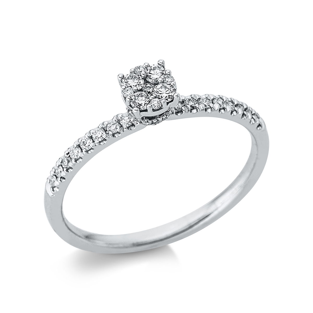Ring 14 kt WG, 4 Brillanten 0,10 ct, TW-si, 33 Brillanten 0,15 ct, TW-si, H:4,4 mm, B:4,4 mm, Weite:55