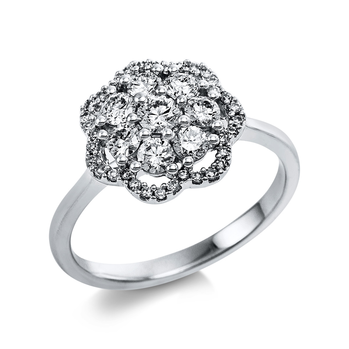 Ring 14 kt WG, 8 Brillanten 0,64 ct, TW-si, 35 Diamanten 0,13 ct, TW-si, Weite:54