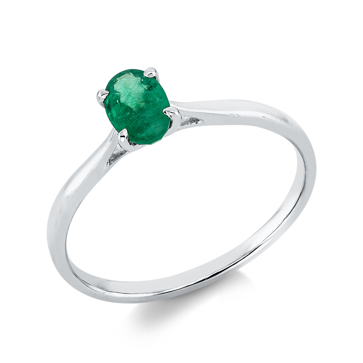 Ring 18 kt GG, 1 Smaragd 0,41 ct grün, Weite:54