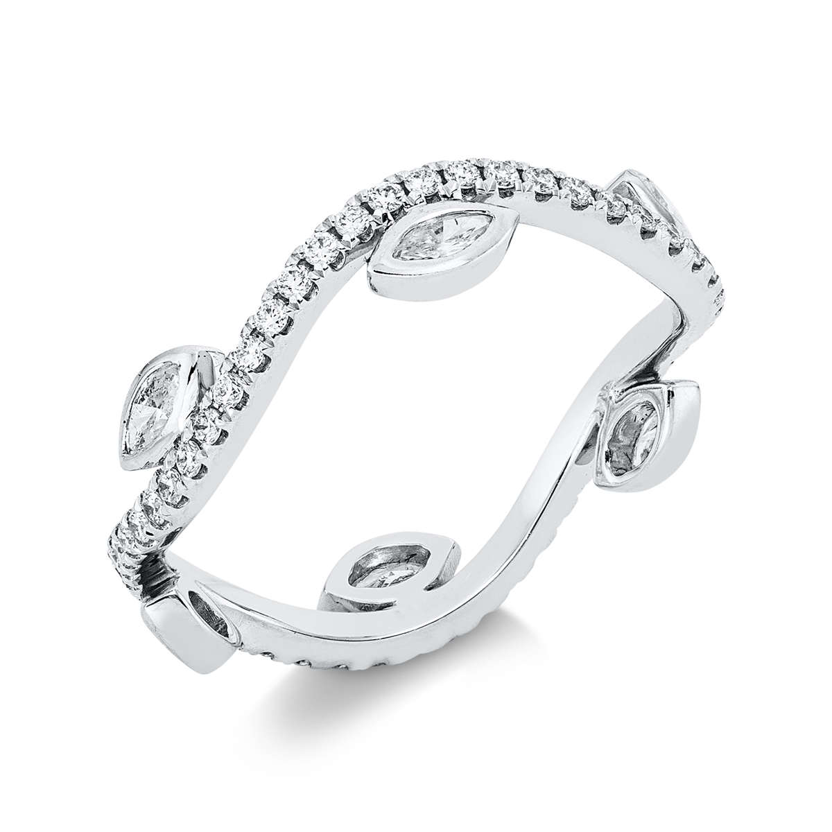 Ring 18 kt GG, 6 Navette 0,23 ct, TW-si, 50 Brillanten 0,30 ct, TW-si, Weite:52