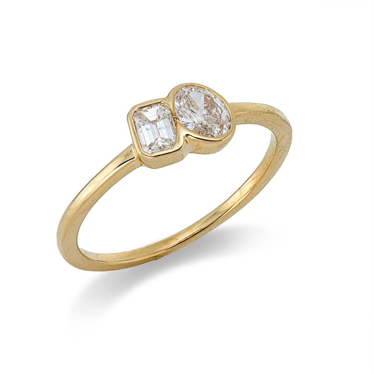 Ring 18 kt GG, 1 Sm.schliff 0,21 ct, TW-si, 1 Oval 0,31 ct, TW-si, H:7,8 mm, B:5,7 mm, Weite:54