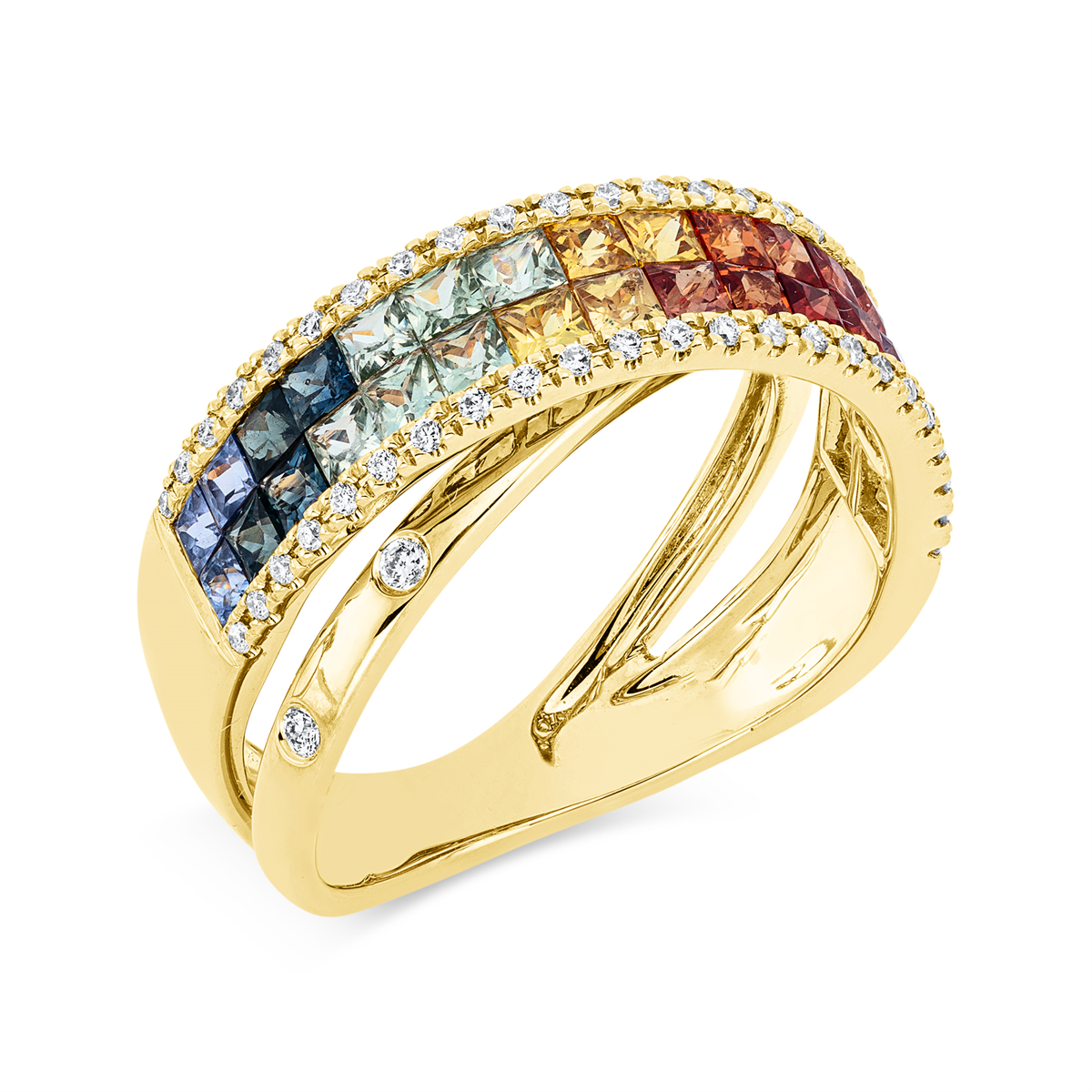 Ring 18 kt GG, 50 Brillanten 0,25 ct, TW-si, 32 Saphire 2,45 ct fancy, Weite:53