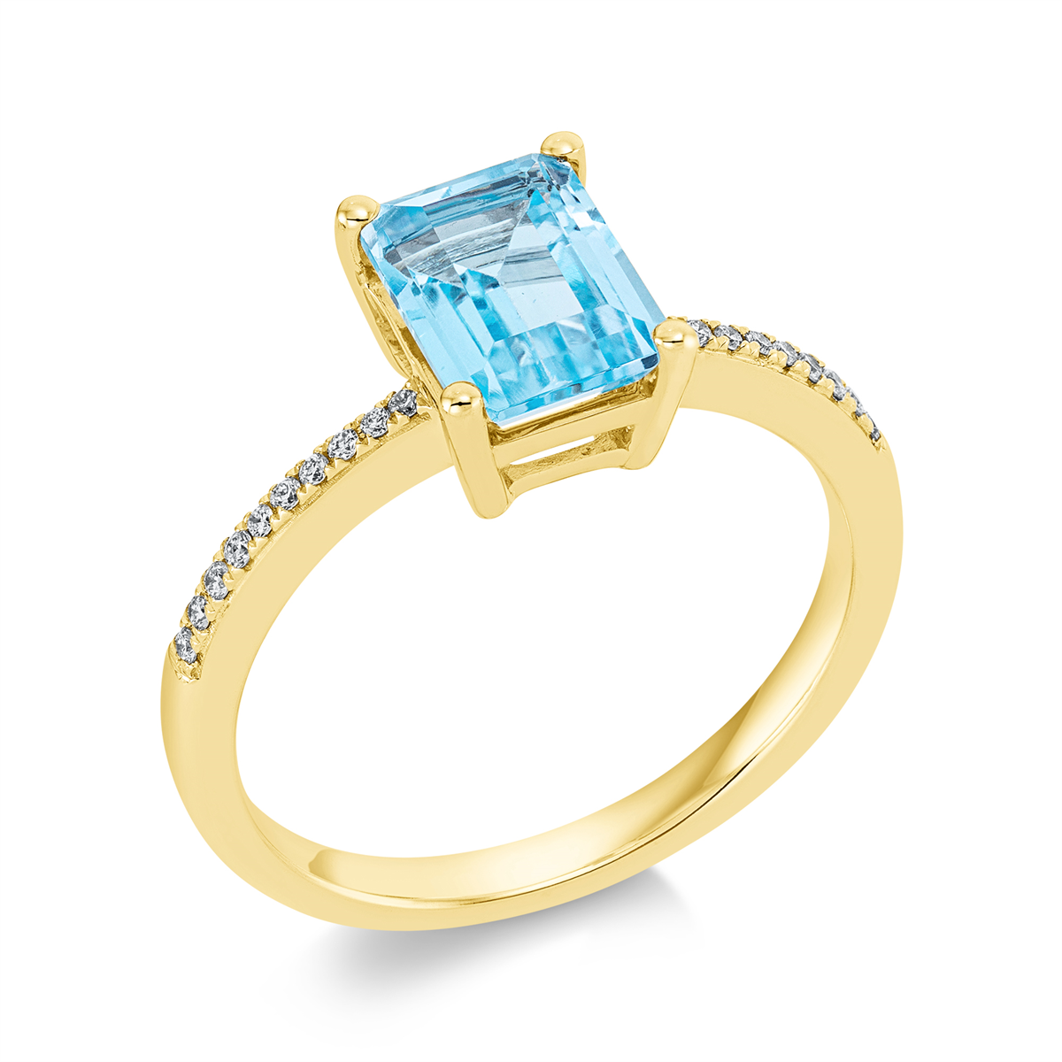 Ring 18 kt GG, 20 Brillanten 0,07 ct, TW-si, 1 Topas 1,42 ct sky blue, H:6,9 mm, B:8,4 mm, Weite:54