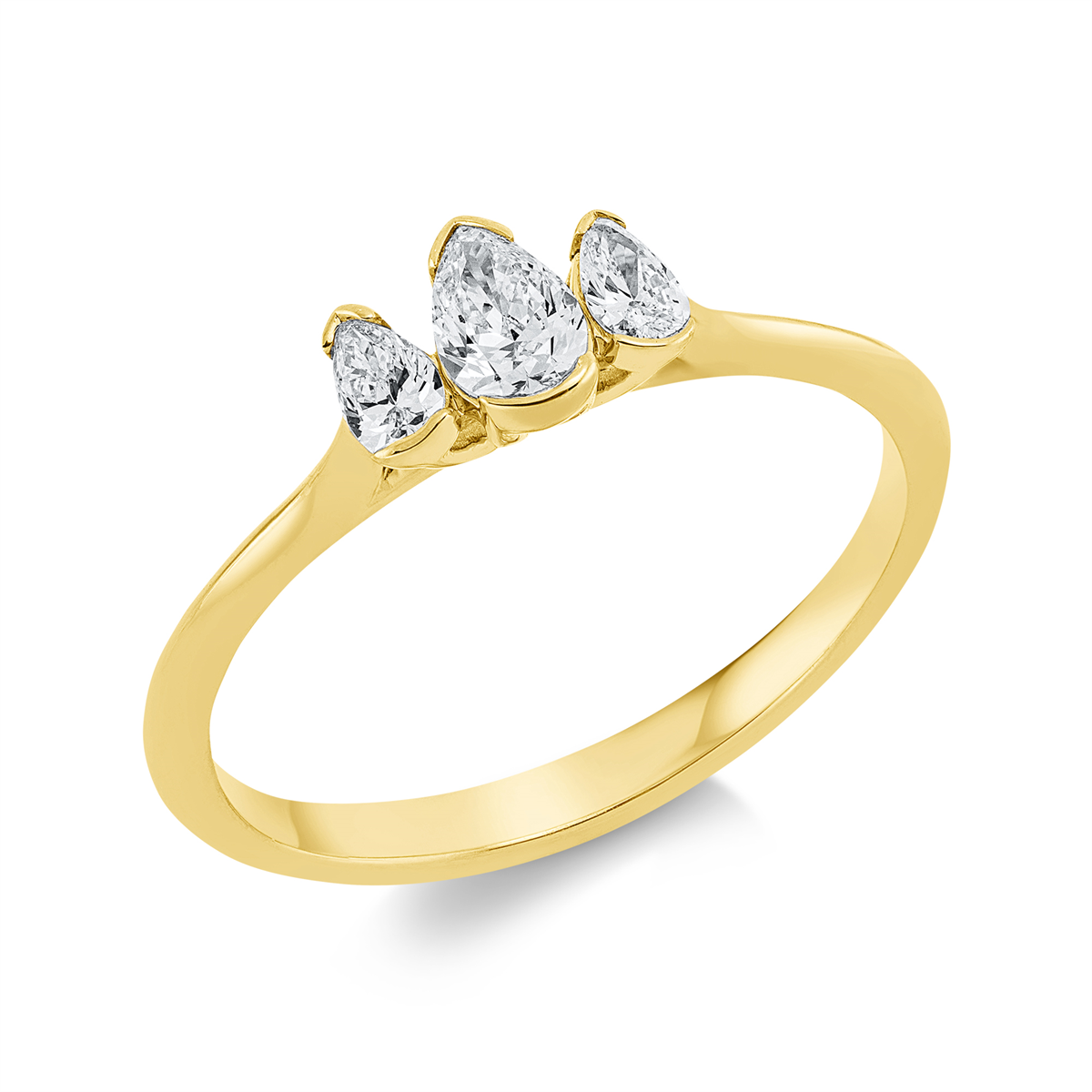 Ring 18 kt GG, 1 Tropfen 0,19 ct, TW-si, 2 Tropfen 0,15 ct, TW-si, Weite:54