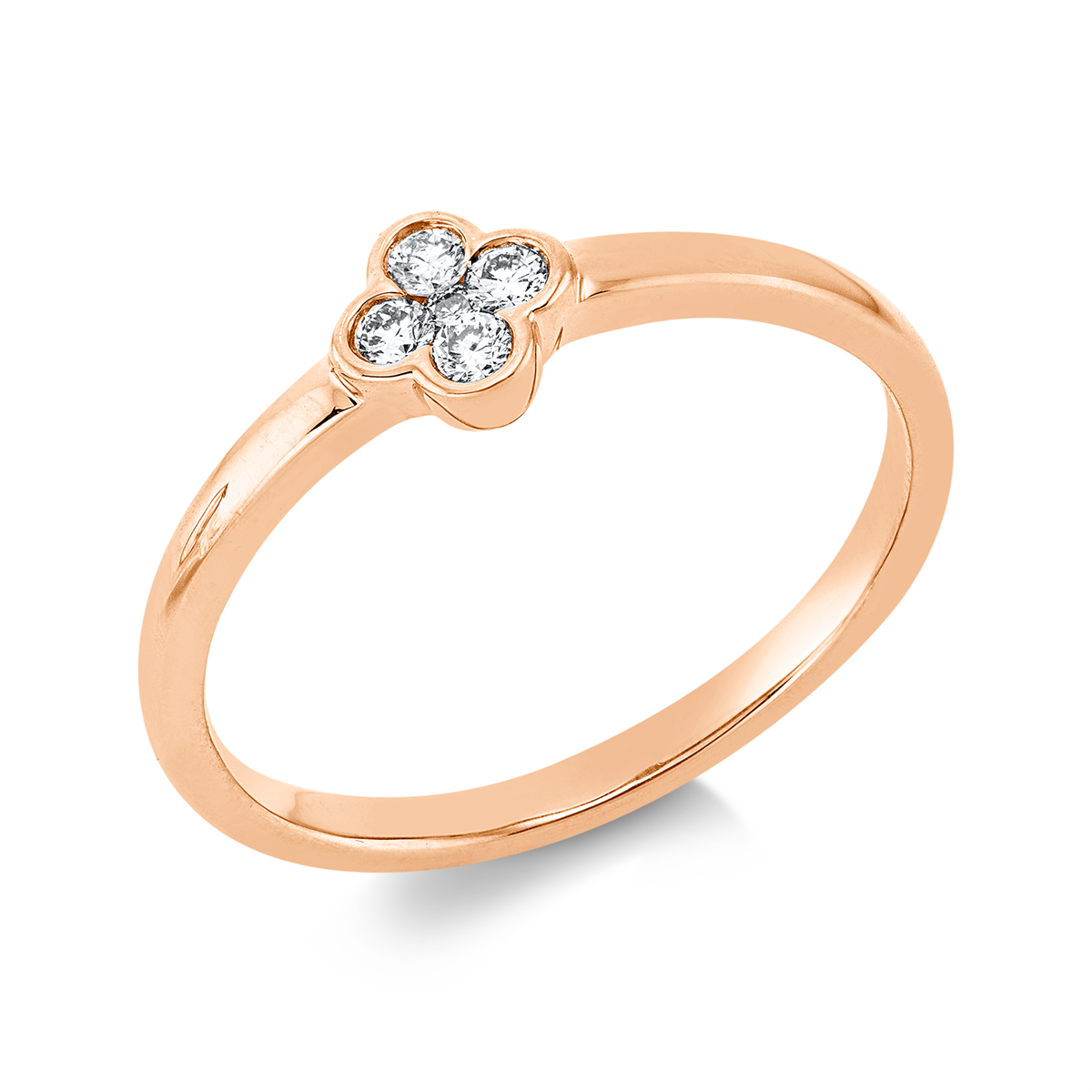 Ring 18 kt GG, 1 Brill. 0,01 ct, TW-si, 4 Brillanten 0,09 ct, TW-si, H:5,6 mm, B:5,3 mm, Weite:54