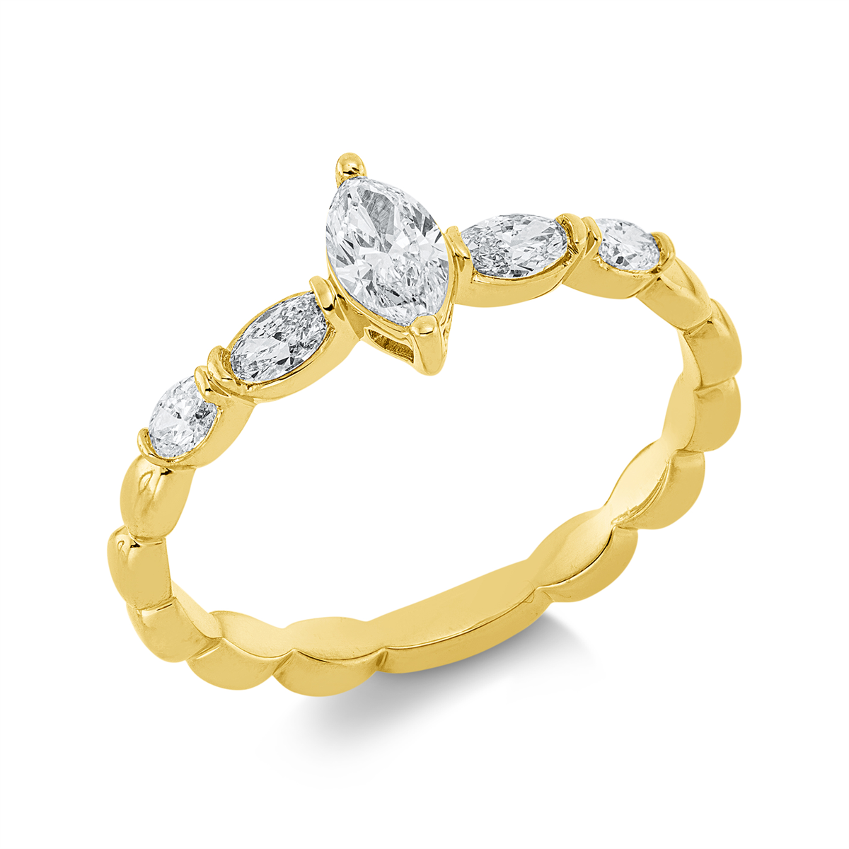 Ring 18 kt GG, 1 Navette 0,23 ct, TW-si, 4 Oval 0,32 ct, TW-si, H:17,0 mm, B:7,2 mm, Weite:53,5
