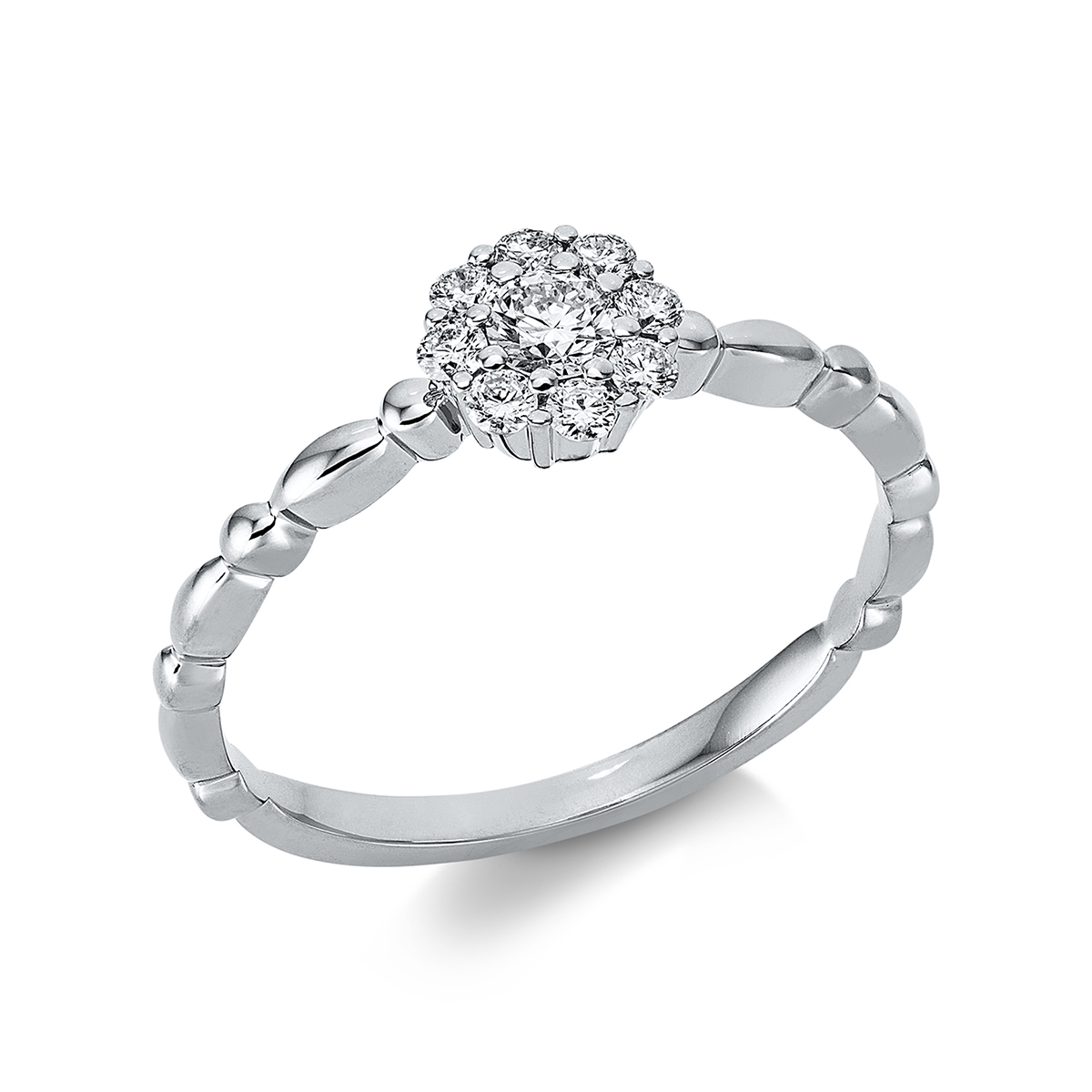 Ring 18 kt GG, 9 Brillanten 0,25 ct, TW-si, H:6,2 mm, B:6,2 mm, S:3,3 mm, Weite:54