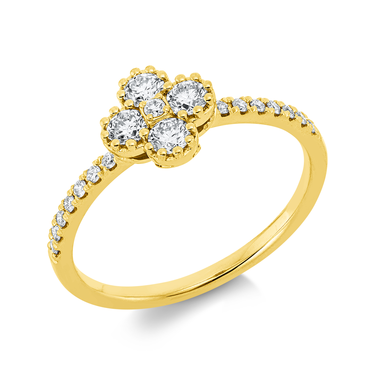 Ring 18 kt GG, 4 Brillanten 0,33 ct, TW-si, 15 Brillanten 0,10 ct, TW-si, H:7,9 mm, B:7,9 mm, Weite:54